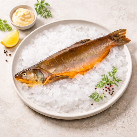 Der Räuchersaibling ist im Ganzen, ausgenommen, geräuchert, schockgefrostet und ist bis zu 6 Monate flexibel verwendbar. Frische und Qualität bleiben beim räuchern und anschließendem Schockfrosten erhalten.