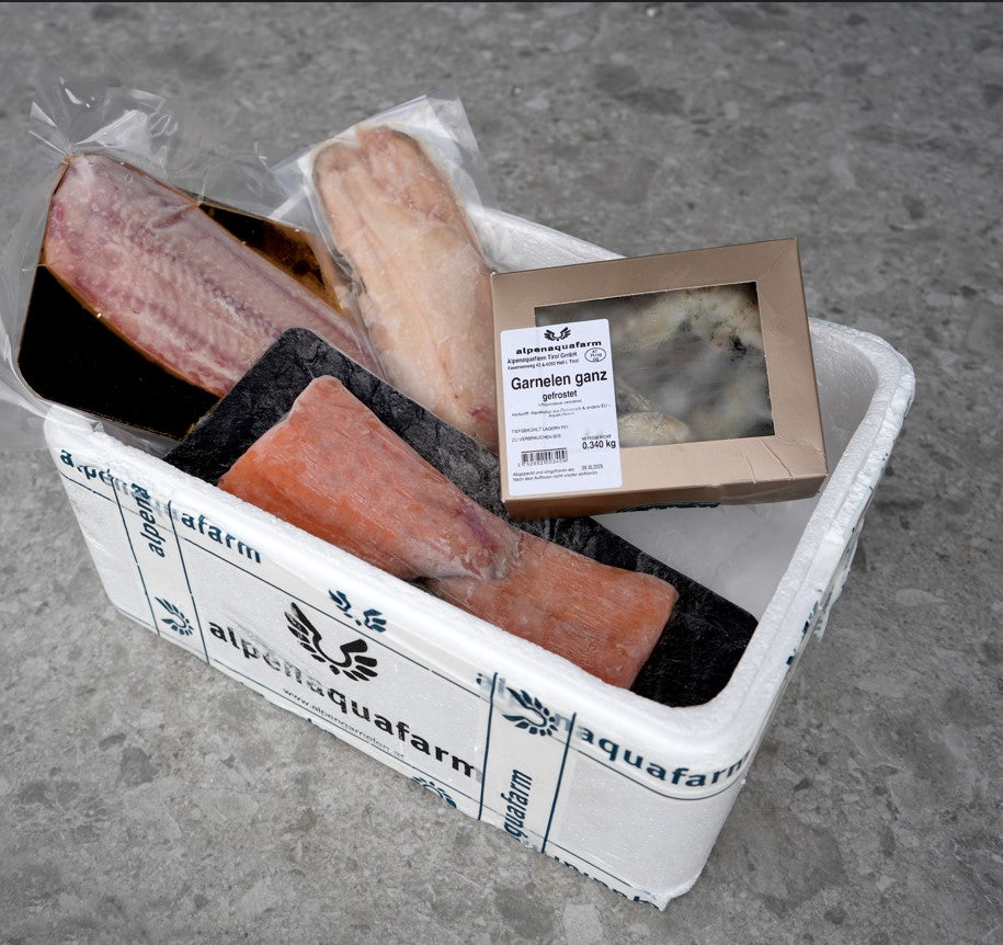 Der perfekte Einstieg in die Alpenaquafarm-Welt – ideal zum Kennenlernen oder Verschenken. Genieße unsere beliebtesten Regionalen Fisch-Spezialitäten in einer sorgfältig zusammengestellten Box. Frisch, nachhaltig und voller Genuss. Mit der Probierbox erhält man einen guten Einblick in unser Sortiment und Qualität.