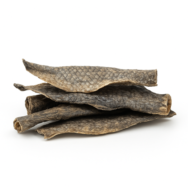 Unsere luftgetrocknete Welshaut ist der ideale Snack für alle vierbeinigen Feinschmecker. Hergestellt aus hochwertiger Haut des Welses, bietet sie nicht nur einen intensiven Geschmack, sondern auch zahlreiche gesundheitliche Vorteile: