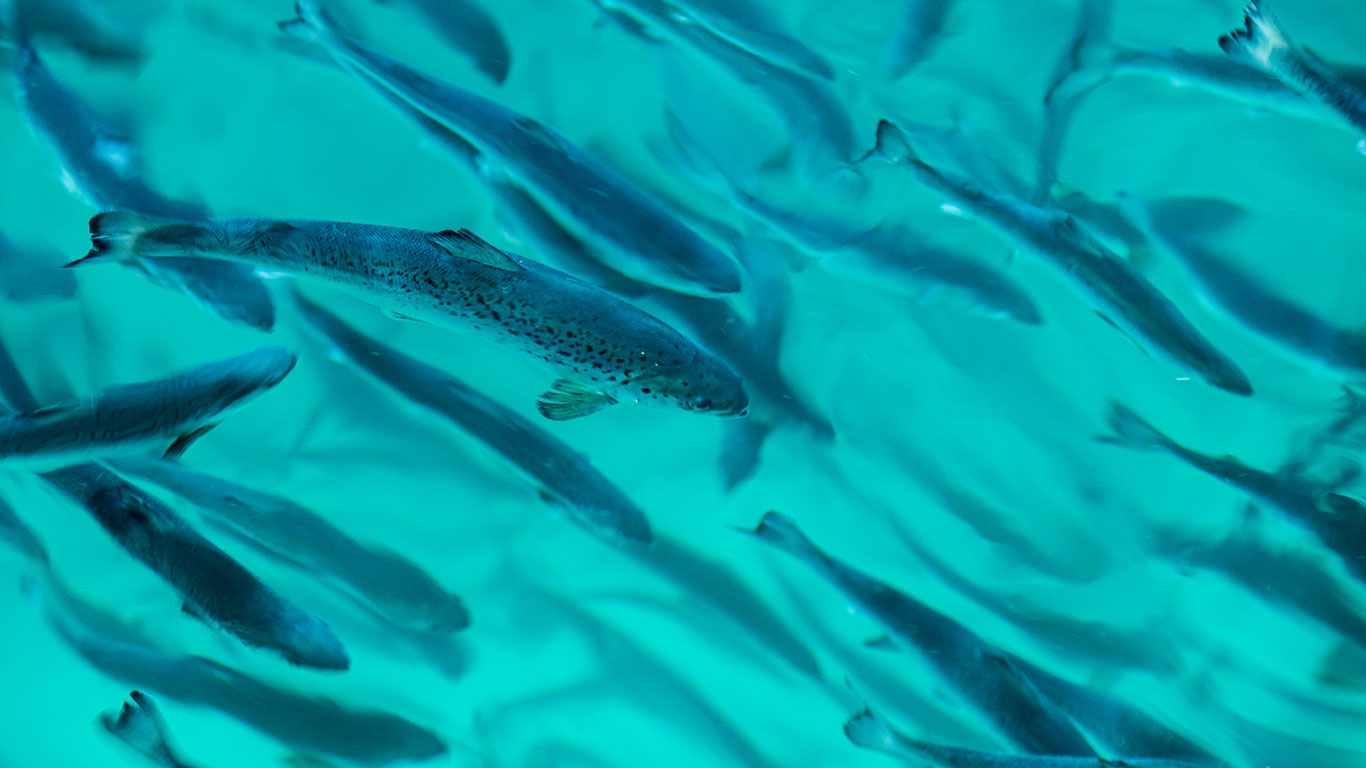 + das sorgfältig abgestimmte nachhaltige Lachsfutter sorgt für einen gesunden Wachstum der Fische