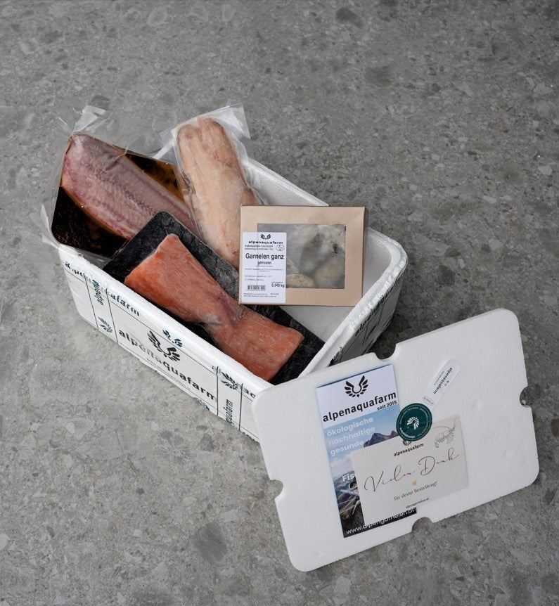 Der perfekte Einstieg in die Alpenaquafarm-Welt – ideal zum Kennenlernen oder Verschenken. Genieße unsere beliebtesten Regionalen Fisch-Spezialitäten in einer sorgfältig zusammengestellten Box. Frisch, nachhaltig und voller Genuss. Mit der Probierbox erhält man einen guten Einblick in unser Sortiment und Qualität.