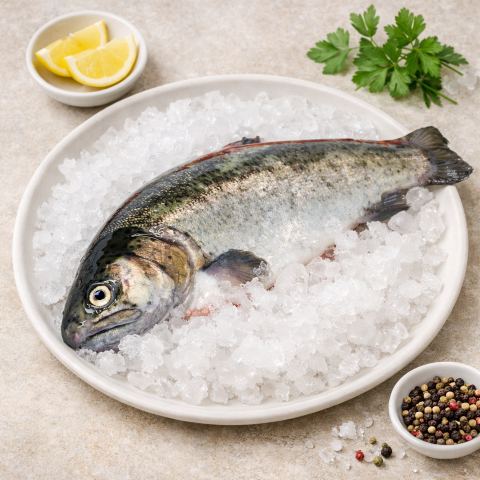 Die Forelle ist im Ganzen, ausgenommen, schockgefrostet und ist bis zu 6 Monate flexibel verwendbar. Frische und Qualität bleiben beim Schockfrosten erhalten.